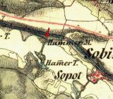 "Hamerský mlýn v Sopotech u hamerského rybníka připadl dne 8. června 1717 koupí Josefu Janáčkovi za 100 zlatých a 30 zl. roční zákupní činže. Bylo u něho 5/4 korce pole nezatíženého a 4 korce desátkového. Jednou z podmínek kupní smlouvy bylo, že mlýn nesmí nikdy připadnouti svobodníkovi, ale s vrchnostenským svolením jen knížecímu polenskému poddanému. Velkostatek usiloval mlýn koupiti zpět, aby mohl vysušiti rybníky hamerský a špetlavský pod Sobiňovem. Podařilo se mu to roku 1873 za 6200 zlatých. Byl pronajímán a roku 1876 zrušen."