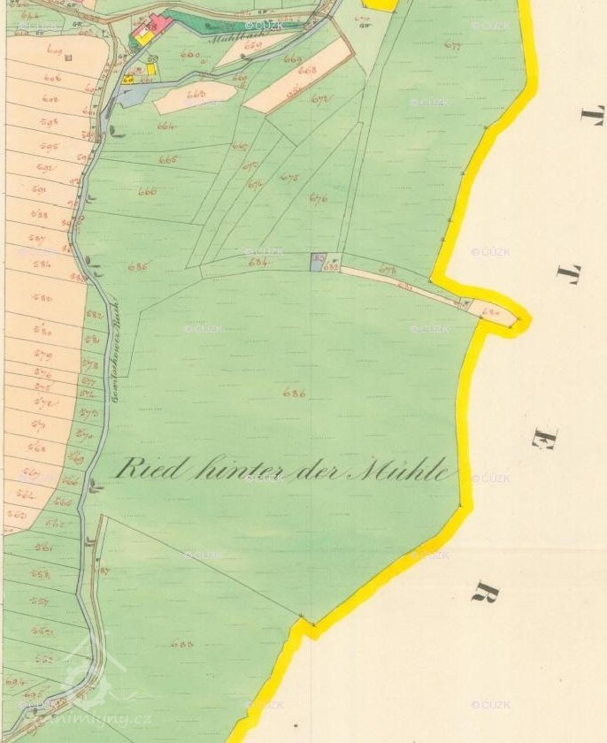 Původně panský mlýn, který vrchnost prodala v roce 1796. Koupil jej František Kraus, po něm následoval roku 1816 Libor Kraus, 1838 Fabian Kraus, potom opět Fabian Kraus, Krausová Viktorie, Gross Ludvík. Po smrti Grosse převzalo JZD; poté odkoupil na chalupu Dvorský Jaroslav a spol.