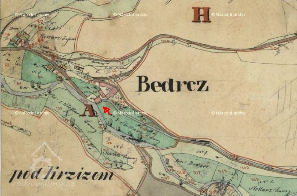 K roku 1414 je uváděna obec v majetku vladyky Jaroše. Je uveden i mlýn. Patrně se jednalo o tento mlýn, který byl součástí větší usedlosti