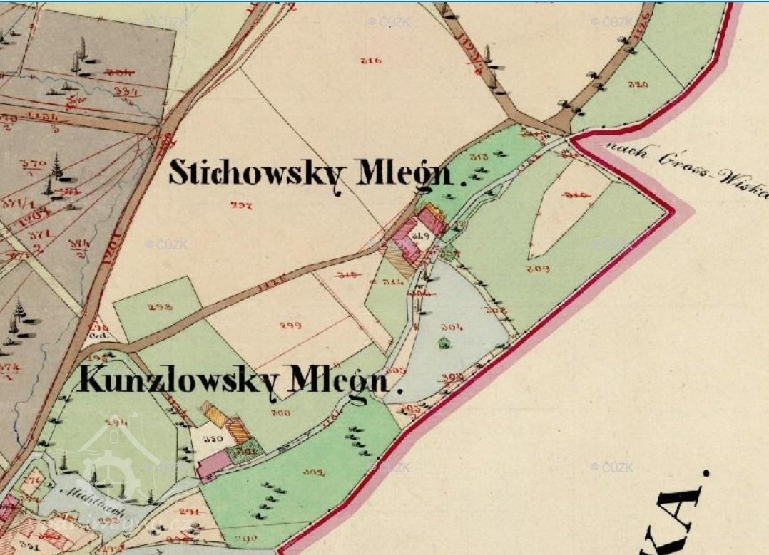 Mlýn je pod názvem Kunzlowský uveden na indikační skice z let 1826 - 1843.