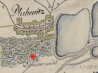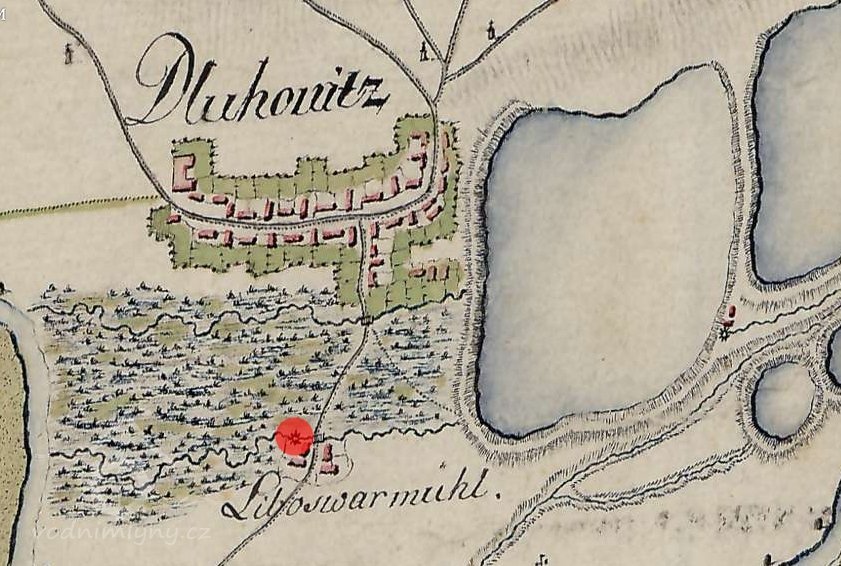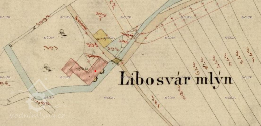 Mlýn, který založil v roce 1719 Jiří Libosvárský a byl nazván po něm, ležel po hrází na výtoku z již zaniklého Hrubého rybníka. Byl prý dřevěný a teprve mlynář Špaček vystavěl jej z kamene.