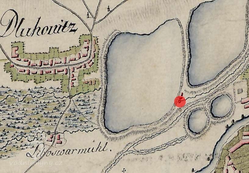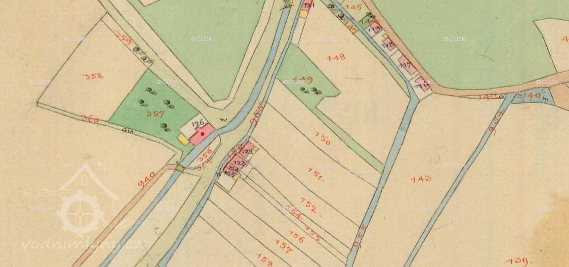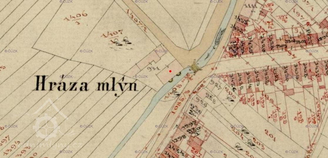 Mlýn, který původně založil roku 1728 Tomáš Piškora a byl nazýván Hrázní. Pod hrází, již dnes neexistujícího Hrubého rybníka. Později nazýván Jelínkův.
