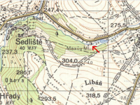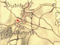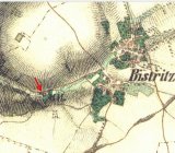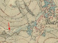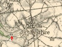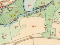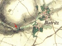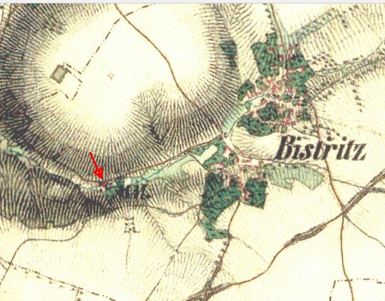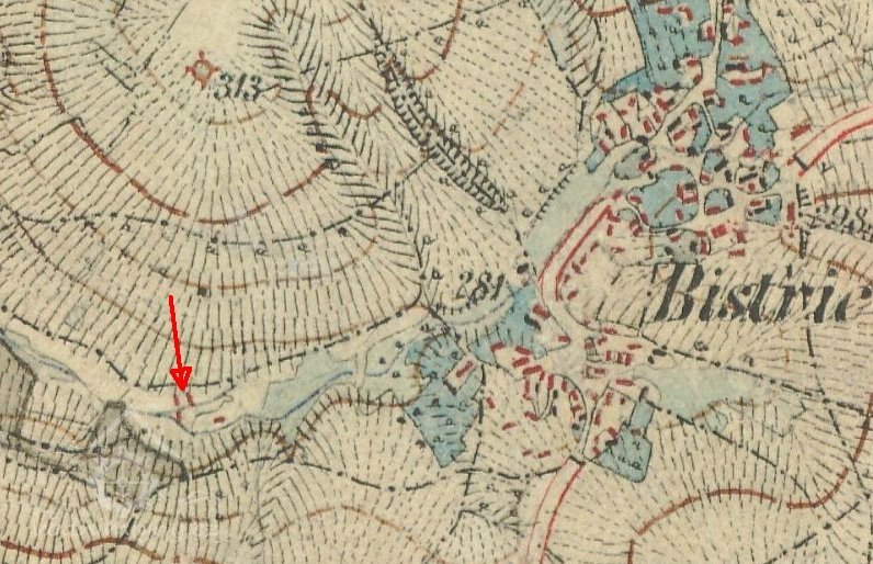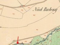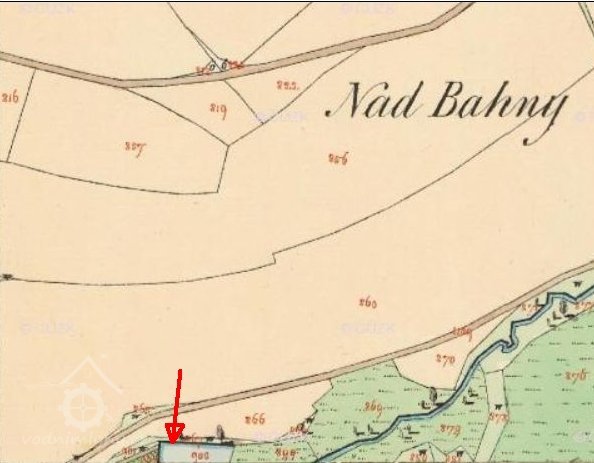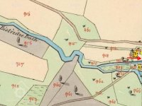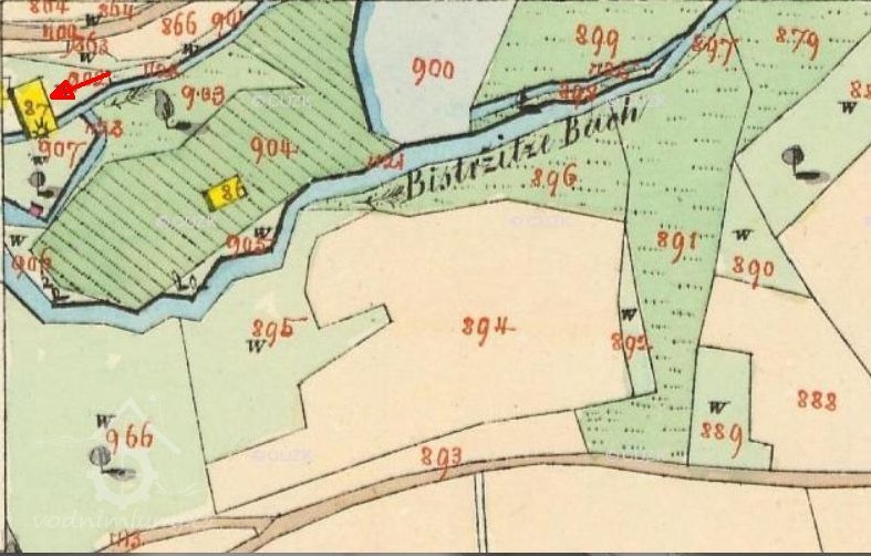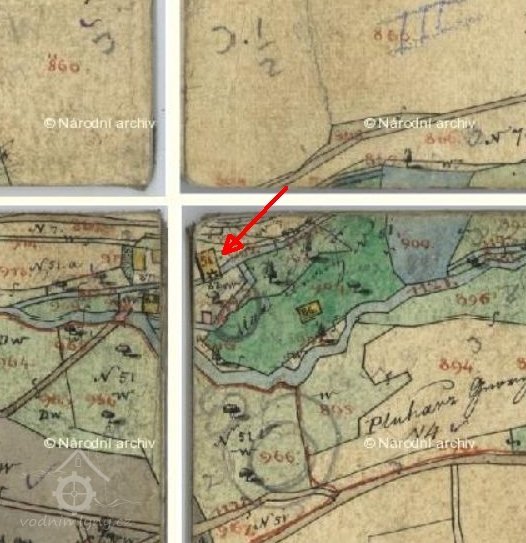 Mlýn je zakreslen na Císařských povinných otiscích na přehybu mapy tak, že budovy a dvůr mlýny jsou zakresleny na dvou částech, část rybníku nad mlýnem je na třetí části mapy.