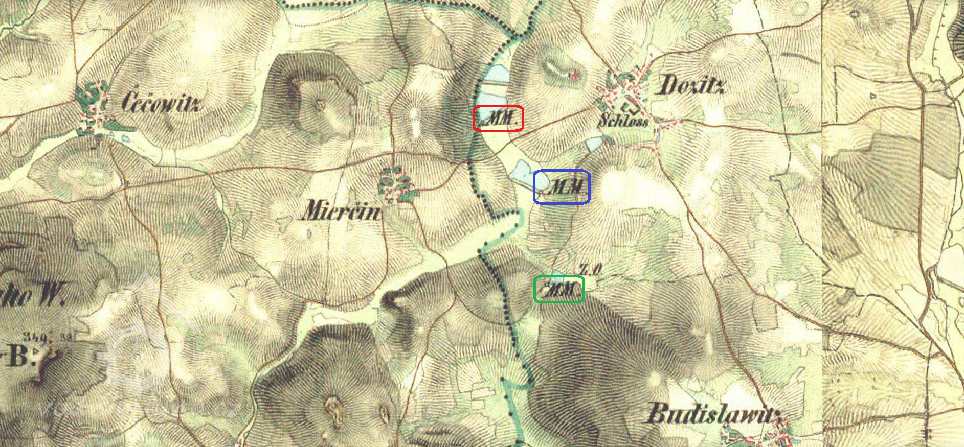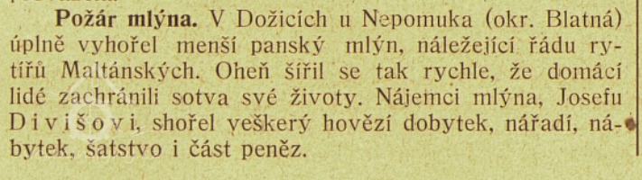 Na mapě II. vojenského mapování je západně od Dožic zakreslen ještě třetí mlýn, jižně od Podhrázského, na katastrálních mapách z přibližně stejné doby však zakreslen není.
