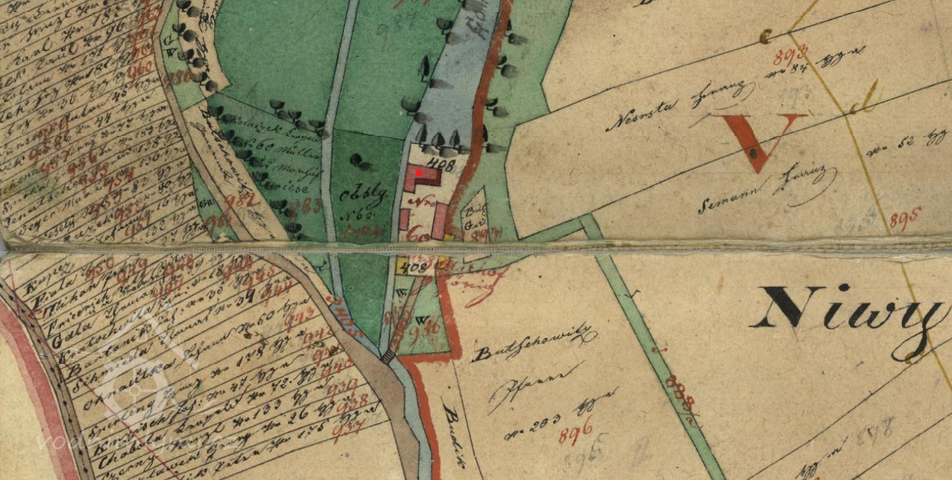 1678 Prokop Doležel postavil s povolením bučovské vrchnosti "z gruntu nový mlýn", mlýn oceněn dvěma mlynářskými mistry na 700 zl. rýn., mlýn původně náležel k Marefům