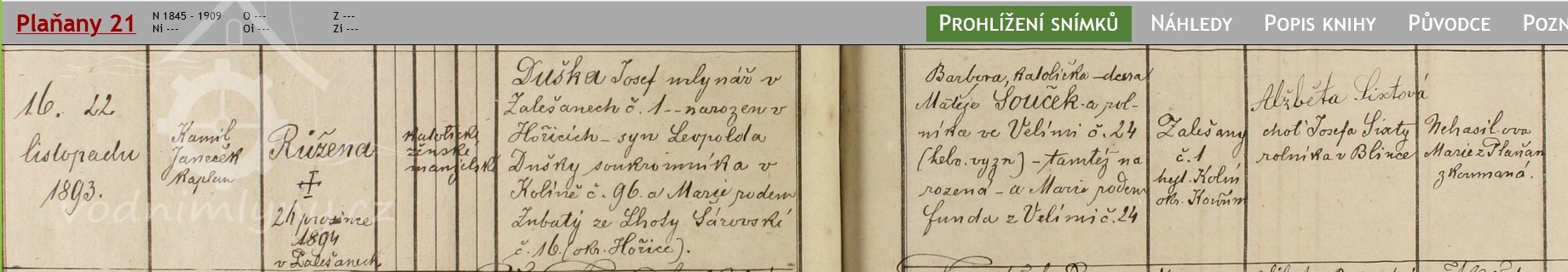 1892, 1893 Josef Duška, dcery Bohumila, Růžena (zemř. 1893). viz foto Ostatní