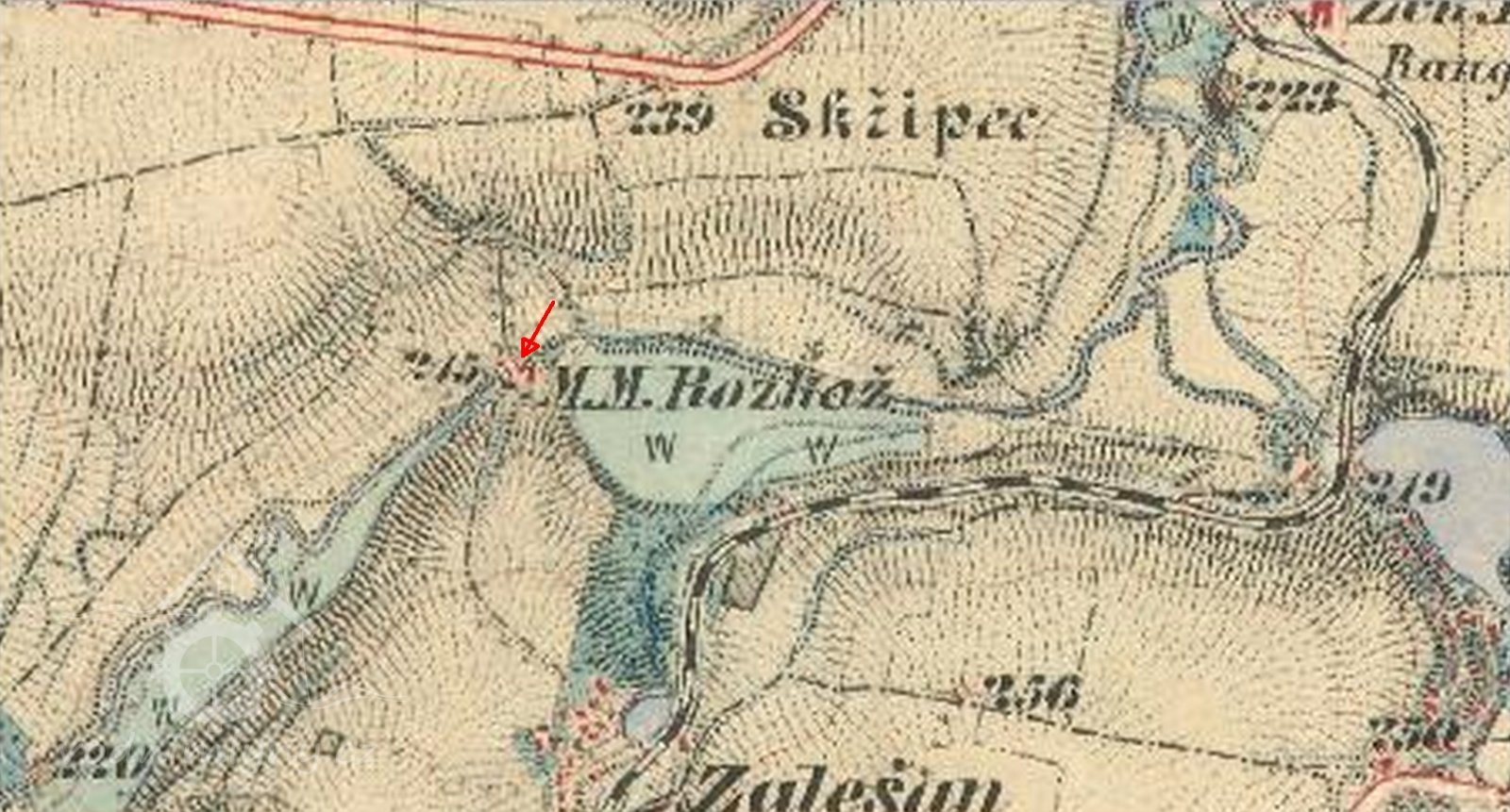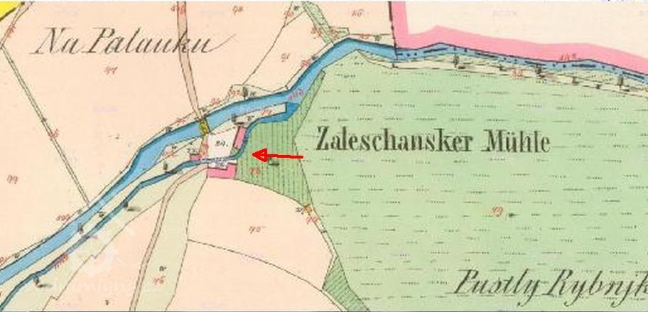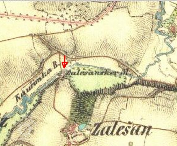 Na I. a II. vojenském mapování je správný název Zalešanský mlýn. Na III. vojenském mapování je chybný název mlýna - mlýn Rozkoš. Došlo patrně k posunutí názvu z nedalekého mlýna Rozkoš, mlýn v Žabonosech.