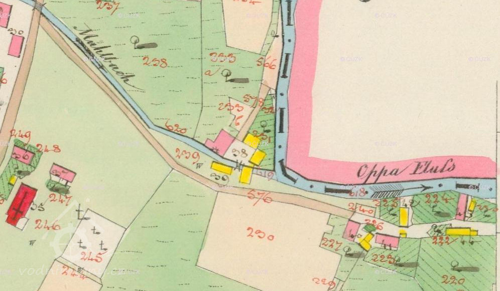 PopisV r. 1930 zde byla Francisova turbína, průtok 0,4 m3/s, spád 4 m, výkon 16 k.