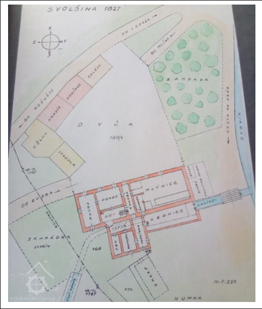 1700 mlýn přestavěn, vystavěn z cihel, s pálenou krytinou