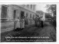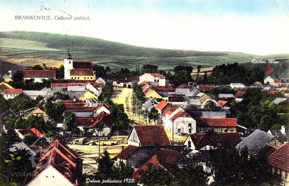 s. 7 - V obci také v té době (pozn. MŠr. - za první republiky) fungovaly dva mlýny, Pěnicův a Rackův mlýn. V Pěnicově mlýně probíhaly letní slavnosti a celé hospodářství bylo na vysoké úrovni. Avšak Pěnicův mlýn neunesl konkurenci zmodernizovaného Rackova mlýna, začal ztrácet zákazníky a během druhé světové války zanikl. Rackův nově přestavěný mlýn byl v celém okolí nejmodernější a dobře prosperující. Po roce 1948 však nastaly určité těžkosti a komplikace v otázce vedení mlýna a na počátku 50. let byl mlýn násilně zrušen.