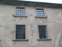 Okno a pamětní deska, 2010, © https://commons.wikimedia.org/, (Prvky na obrázku: okno, plastická omítková výzdoba fasád a štítů)
