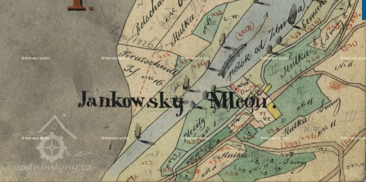 1654 Berní rula Jan Jedlička, mlýn na 2 kola s pustou pilou, 10 strychů polí