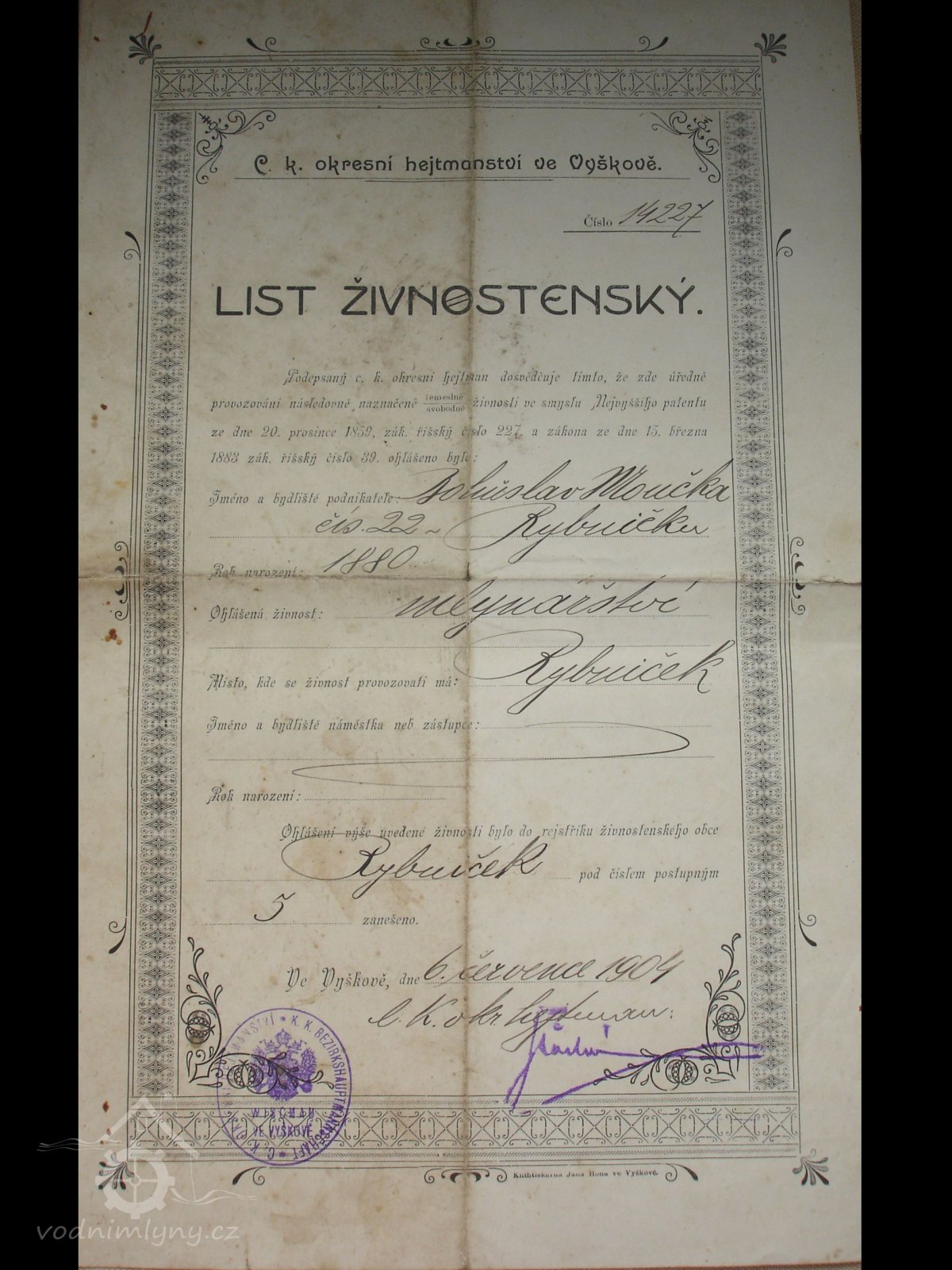 • živnostenský list