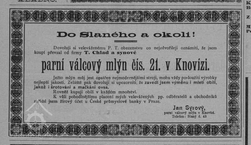 na popud dědiců mlýn převzal Matěj Mužík z Hořejšího mlýna, který se oženil s vnučkou tamějšího Františka Urbánka Veronikou, roz. Cochmanovou, nyní držel oba mlýny v Knovízi