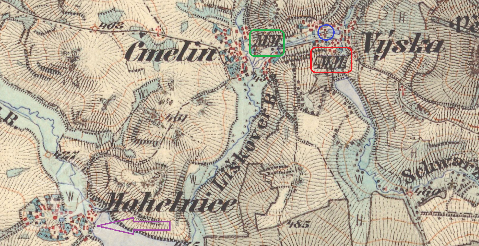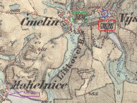 1654 (Berní rula) panství Zelená Hora (Ludmila hr. ze Šternberka) - ve Čmelínech mlýnec s jedním kolem, mlynář Vavřinec Bešťák