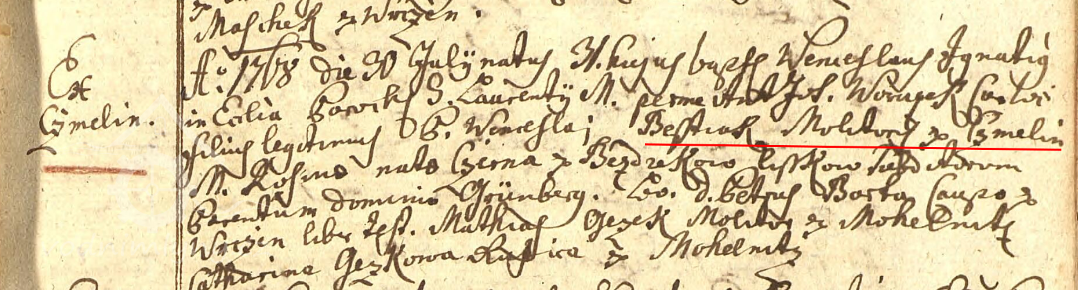 30. 7. 1768 se narodil Václav Ignác, syna Václava Bešťáka, mlynáře z Čmelín a matky Rosiny