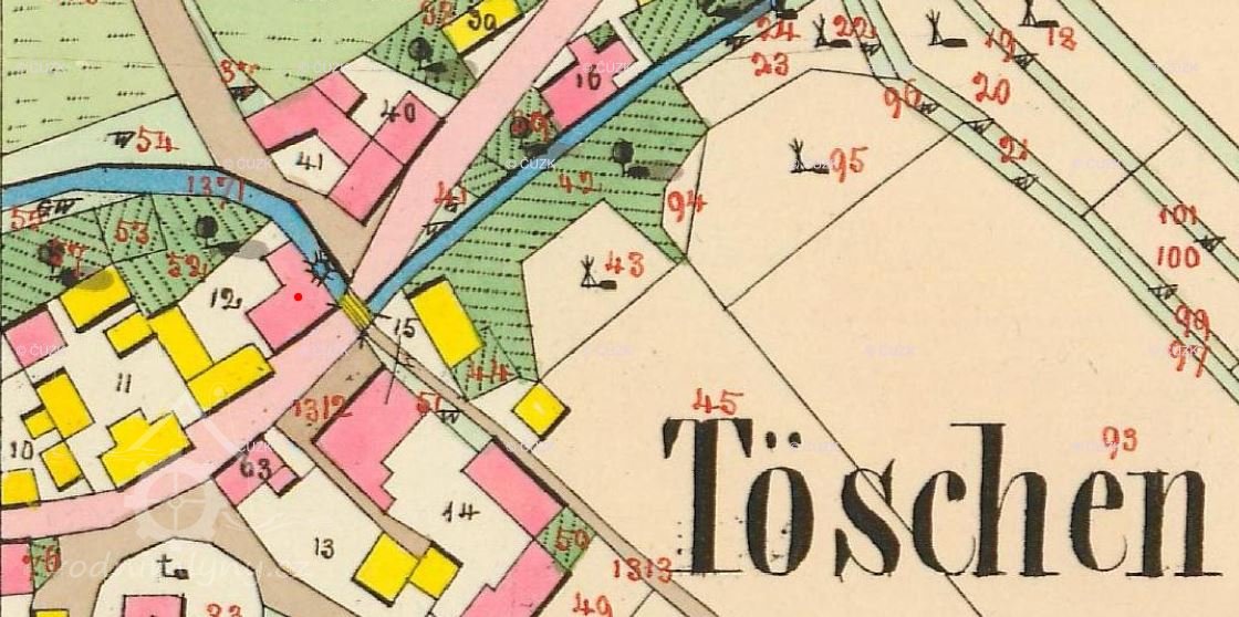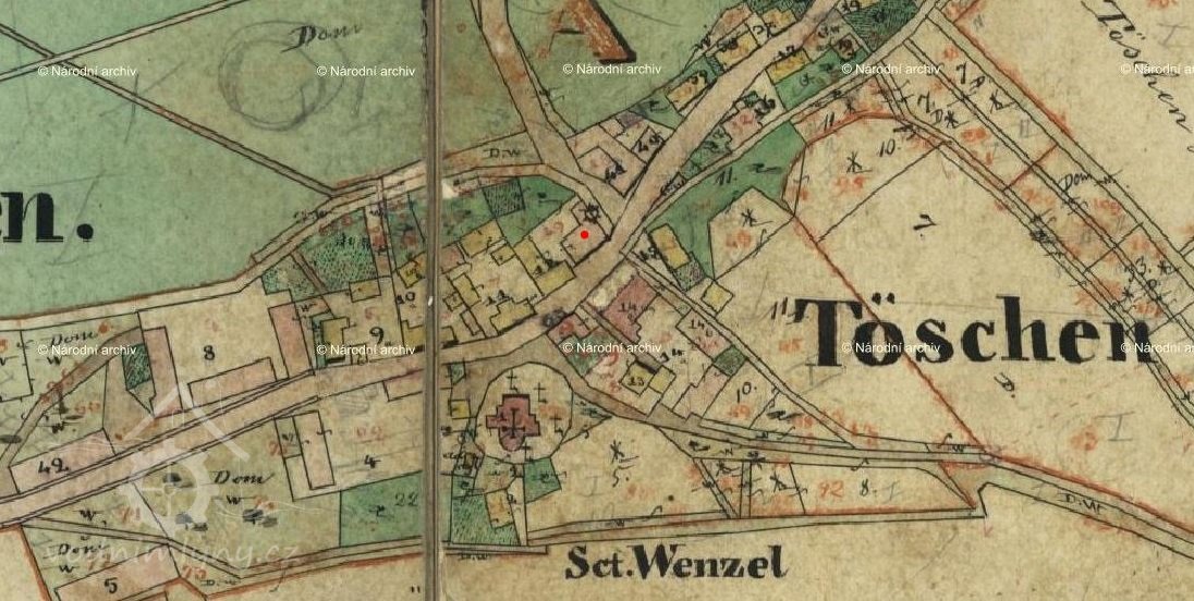 1843 - rozšíření budovy o kolmé křídlo (uvedeno ve stabilním katastru), majitel Josef Tschernatsch