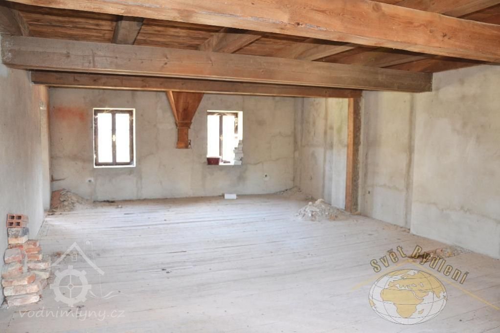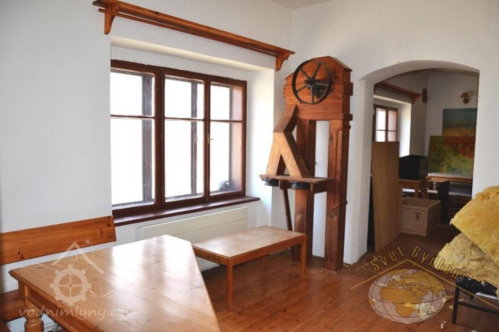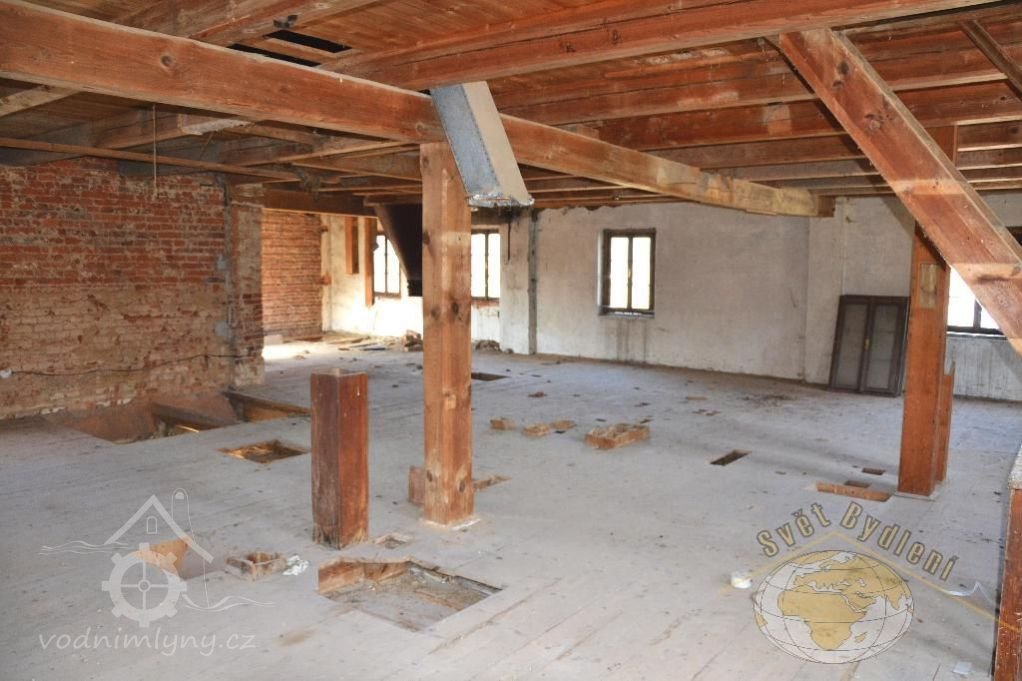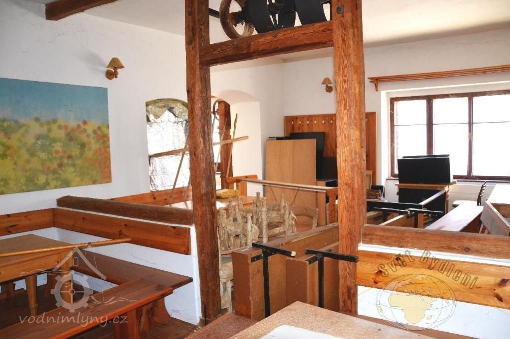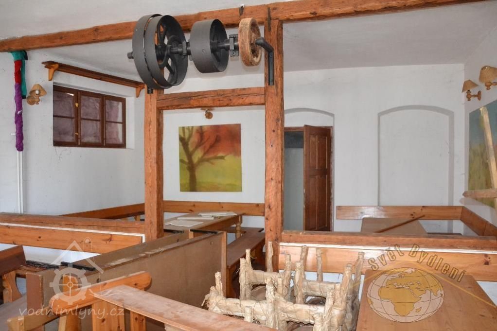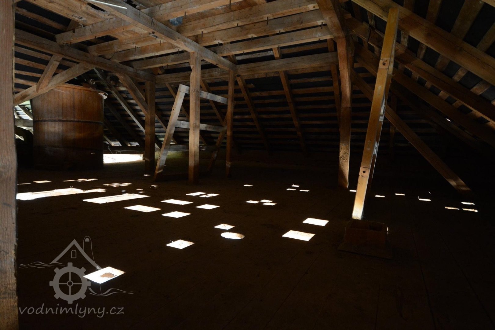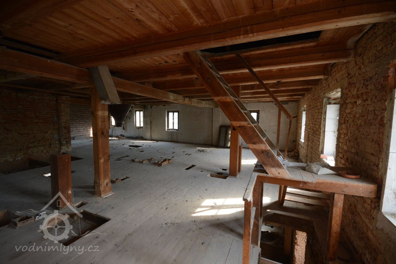 Dispozice interiéru hlavního (staršího) jz křídla je tradiční trojdílná, tvořená uprostřed síní, obytným světnicovým dílem vlevo a mlýnicí v pravém dílu. Mladší sv křídlo navazuje tedy na mlýnici a rozšiřuje tak výrobní prostory. Druhotné přistavění této partie dokládá spára ve zdivu, v níž je čitelná původní venkovní omítka. Místnosti jsou plochostropé. Mlýnice je opatřena trámovými stropy s horním záklopem z širokých prken, vstupní síň a patrně i obytné místnosti mají omítané podhledy. Přístup do objektu je veden od silnice ve 2. podlaží vstupem do síně a ze dvora vstupem do síně v 1. podlaží. V síních jsou umístěny vstupy do obytného i technologického dílu. Třetí podlaží a podkroví byly využívané pouze pro výrobní účely. Krov je nad hlavním křídlem vaznicový se stojatými stolicemi zavětrovanými u sloupků v plných vazbách podélně vzpěrami a příčně oboustrannými pásky. Kolmé křídlo má úsporný hambalkový krov. Jedná se o tradiční soustavy z tesaných trámů s čepovanými spoji, které jsou zajištěny dřevěnými kolíky.