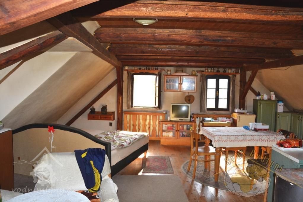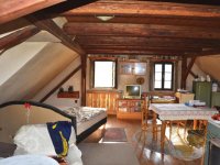 Tradiční rozdělení interiéru na 3 části - uprostřed síň, po stranách obytná část a mlýnice. Přední trakt světnicového dílu měl až do 20. stol. roubenou konstrukci (kvůli zateplení).