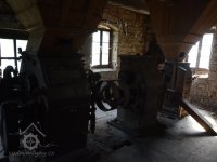čistírna ve III. patře: automatická váha 50 kg na obilí, silo s kapcitou 1400 q, automatická váha na 5 kg, aspiratér Heer Ober Ebersdorf (500 kg), koukolník 800x450 mm, průchodová loupačka Heer 1050x700 mm, kartáčovka 1400x400 mm, autokap s 6 hadicemi.