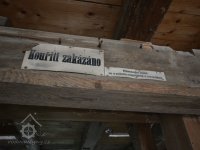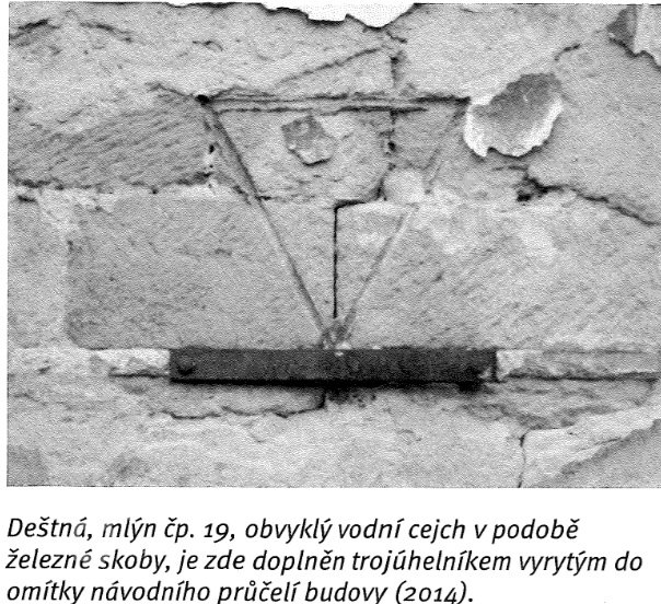 Vpravo od vstupního otvoru ve 2. podlaží je ukotvena železná skoba cejchu a vyrýsovaný trojúhelník, označující úroveň, od které byla odměřována vodní hladina. Na skobě je vyražen špatně čitelný nápis "18 F.L. 77" (Ferdinand Laske).