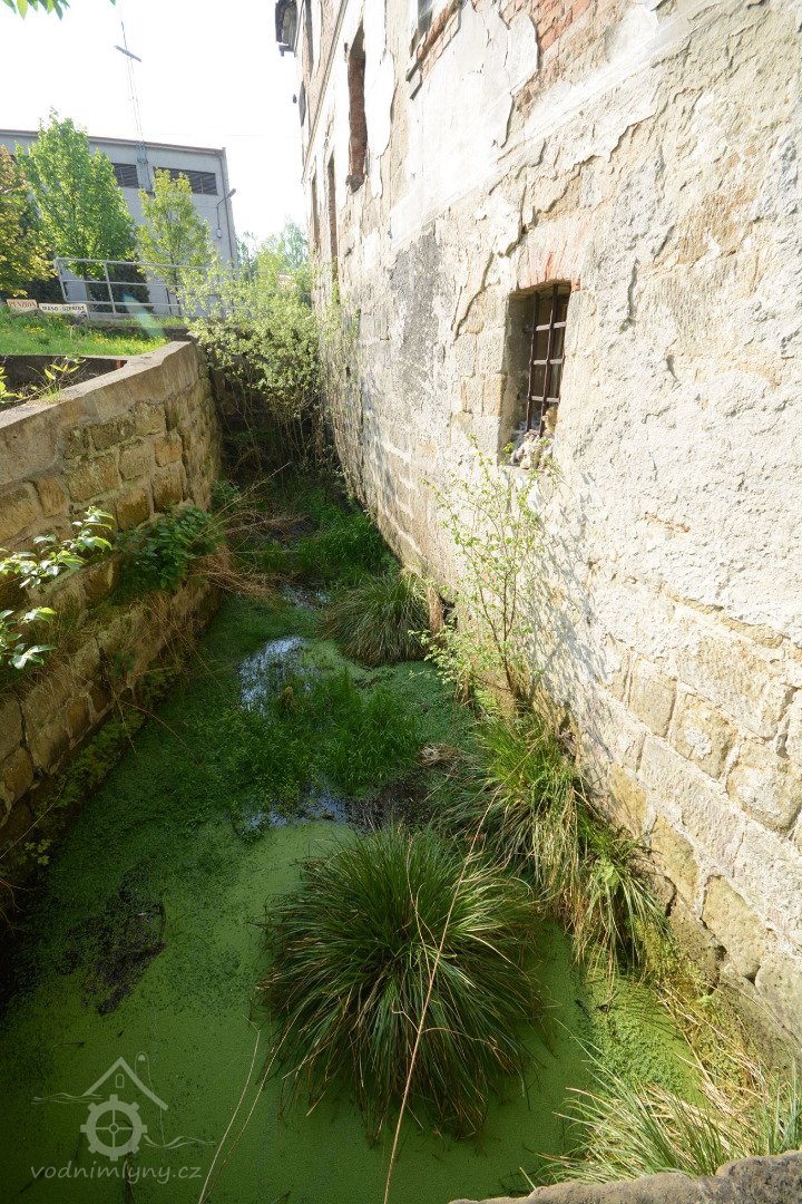 Voda byla vedena ke mlýnu náhonem dlouhým cca 650 m z horního toku říčky Liběchovky. Těleso jezu, který ležel západně od mostu na cestě do Vrabcova, zcela zaniklo. Jeho poloha je patrrná pouze díky reliktům dnes již zaneseného přilehlého náhonu, který procházel dnešním parčíkem a naproti mlýnu se lomil a procházel pod silnicí.