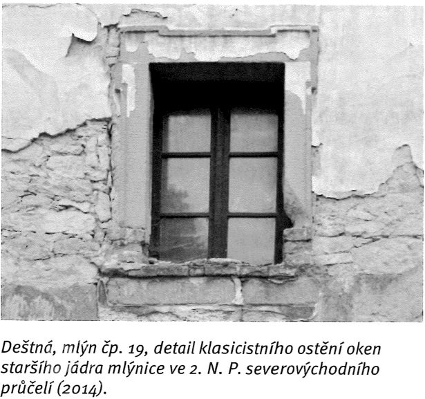 p>1820 - mlýn po požáru obnoven, postaven z pískovcových kvádrů (klasicismus)