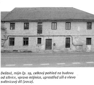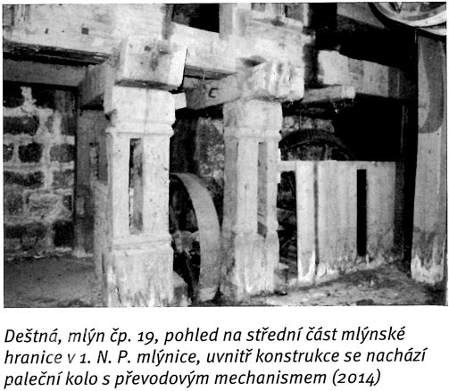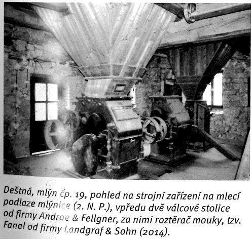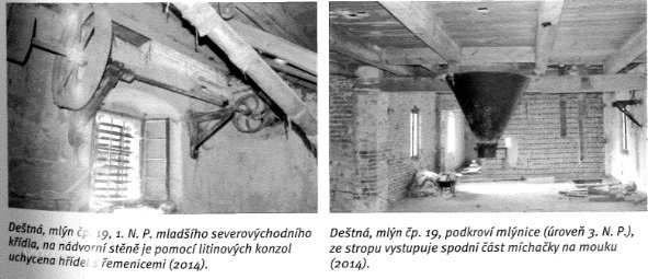 PopisV roce 1930 měl mlýn 2 kola na vrchní vodu, hltnost 0,216 m3/s, spád 3,4 m, výkon 6,8 HP