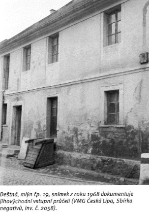 1820 - mlýn obnoven, mlynář Anton Tschernatsch. Mlýn postaven z pískovcových kvádrů (klasicismus), dochované ostění a portály. Povoleno zřízení pily za roční poplatek 5 zl., avšak nerealizováno.