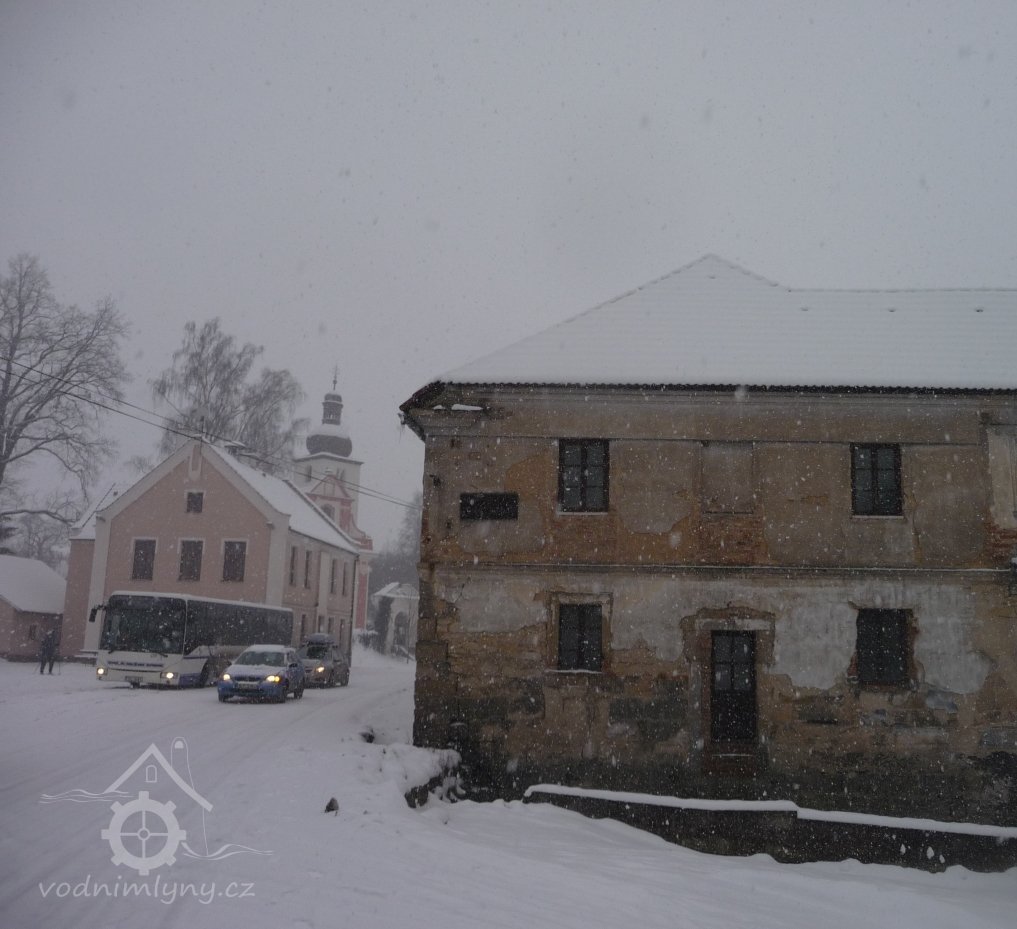 Velký chátrající mlýn stojí uprostřed obce u hlavní silnice Mělník - Dubá. U mlýna jsou viditelné zbytky lednice.