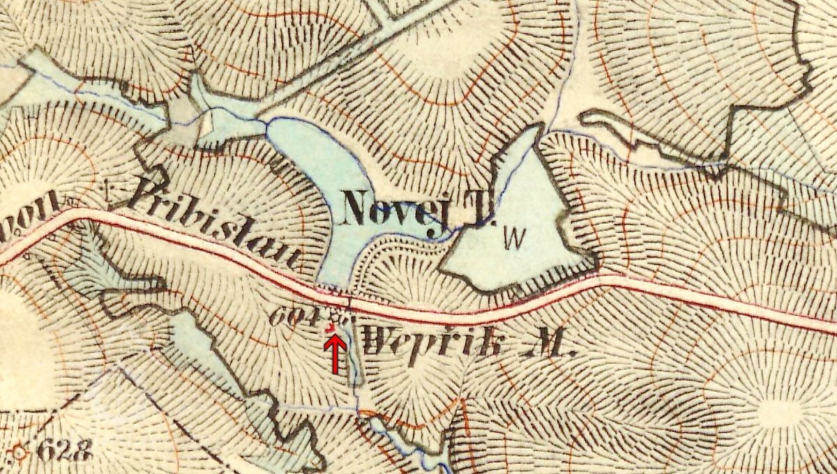 cca 1,2 km severovýchodně od obce Vepřová