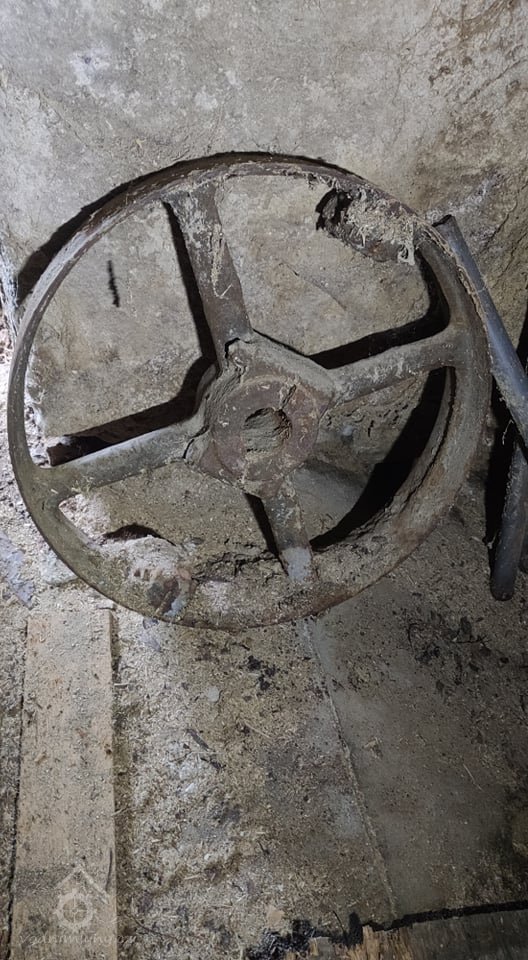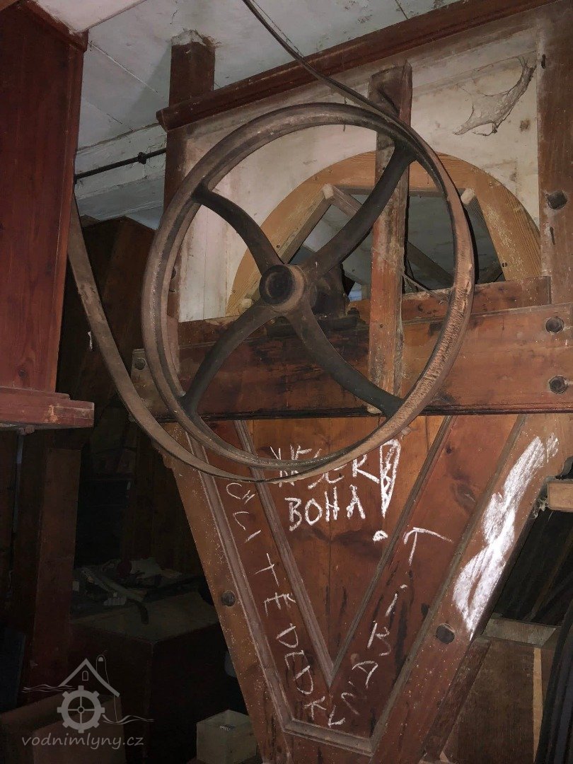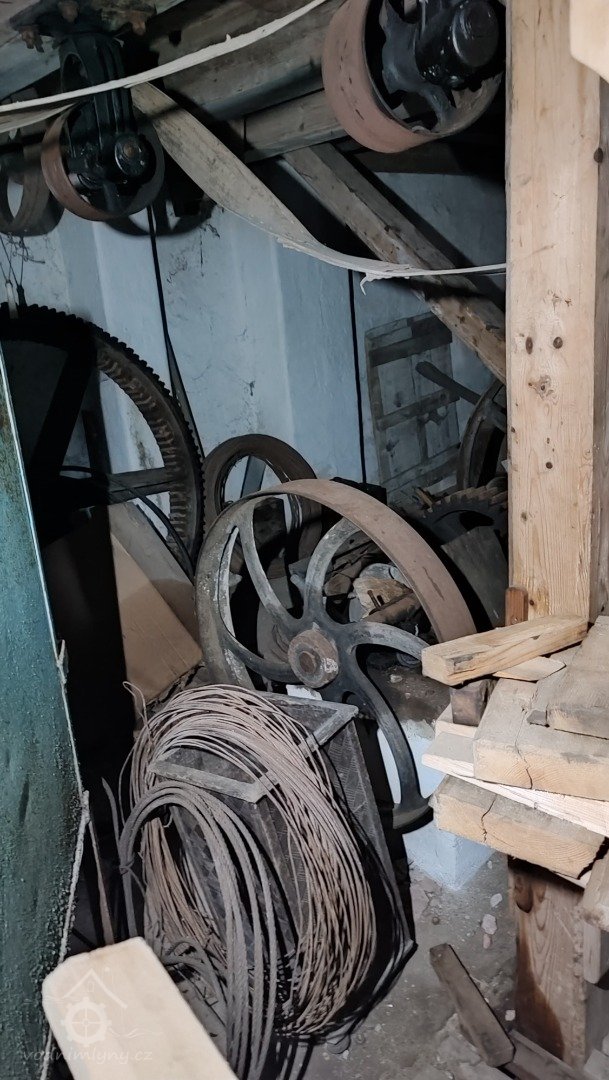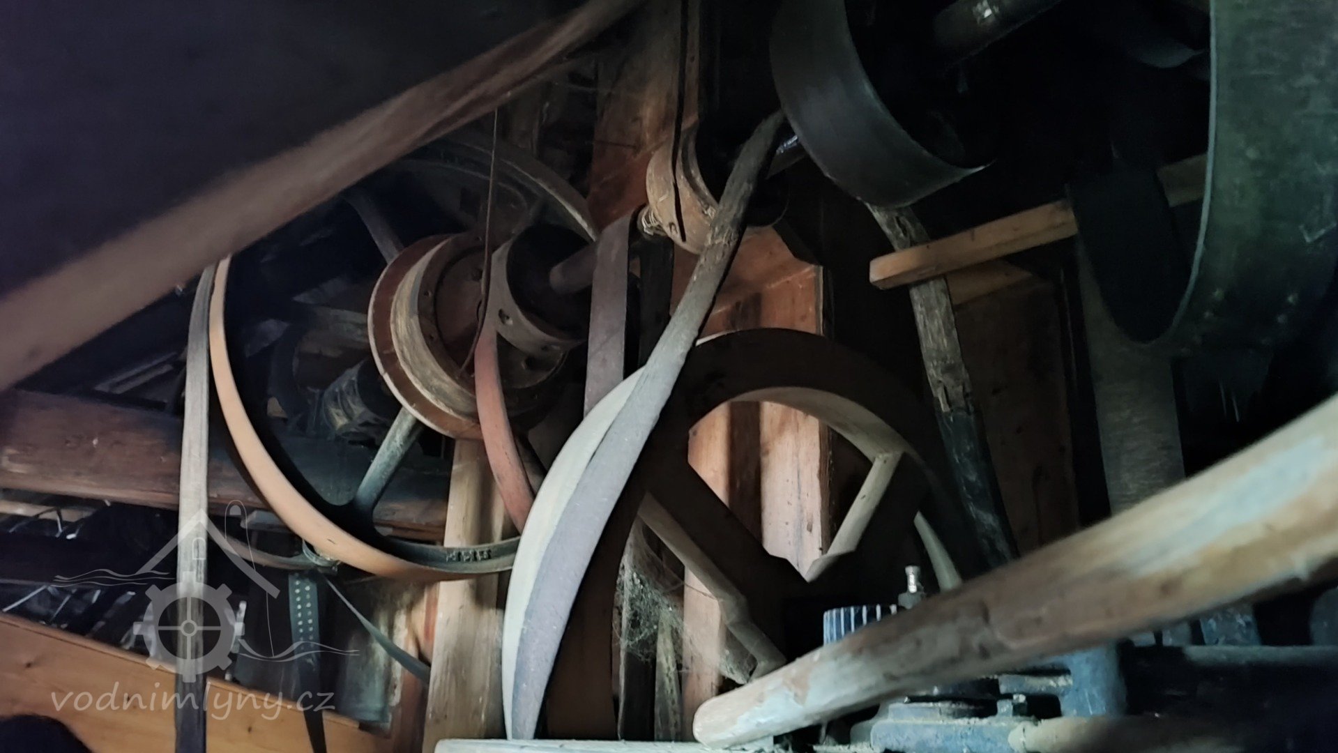Paleční kolo, 06 2025, © Jane Bilinka Lenka, (Prvky na obrázku: transmise, řemenice, převody - transmisní hřídele s řemenicemi (výrobek průmyslový i řemeslný))