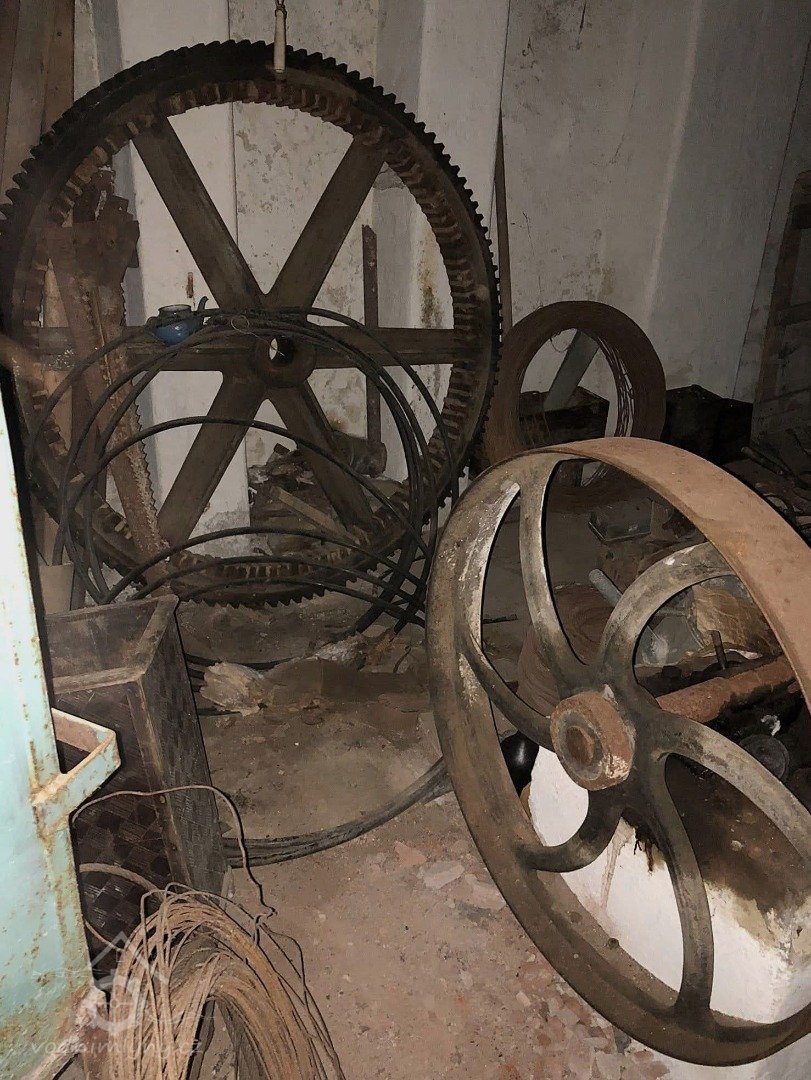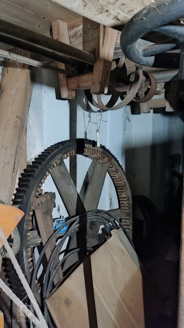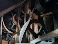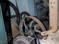 Transmise, 06 2025, © Jane Bilinka Lenka, (Prvky na obrázku: transmise, řemenice, převody - paleční kola, pastorky a cévníky (řemeslný výrobek))
