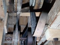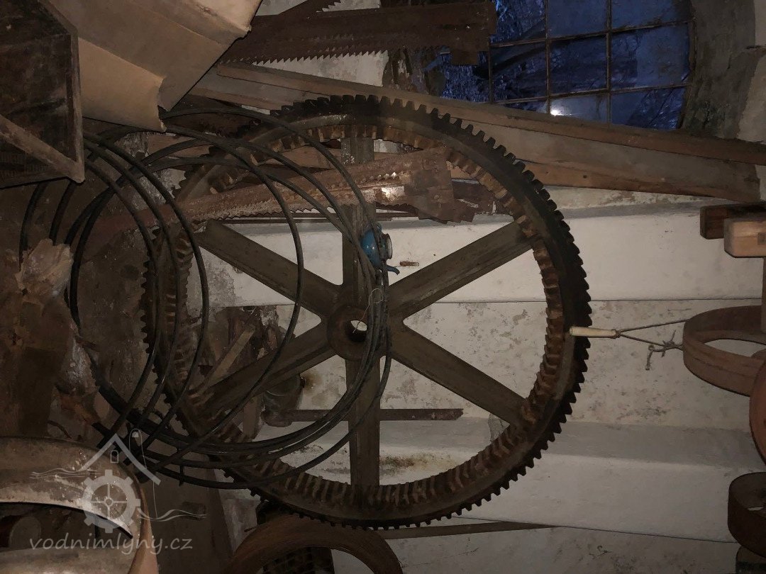 Paleční kolo, 06 2025, © Lenka Martínková, (Prvky na obrázku: transmise, řemenice, převody - paleční kola, pastorky a cévníky (řemeslný výrobek))