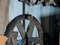 Kolo transmise, 06 2025, © Jane Bilinka Lenka, (Prvky na obrázku: transmise, řemenice, převody - paleční kola, pastorky a cévníky (řemeslný výrobek))