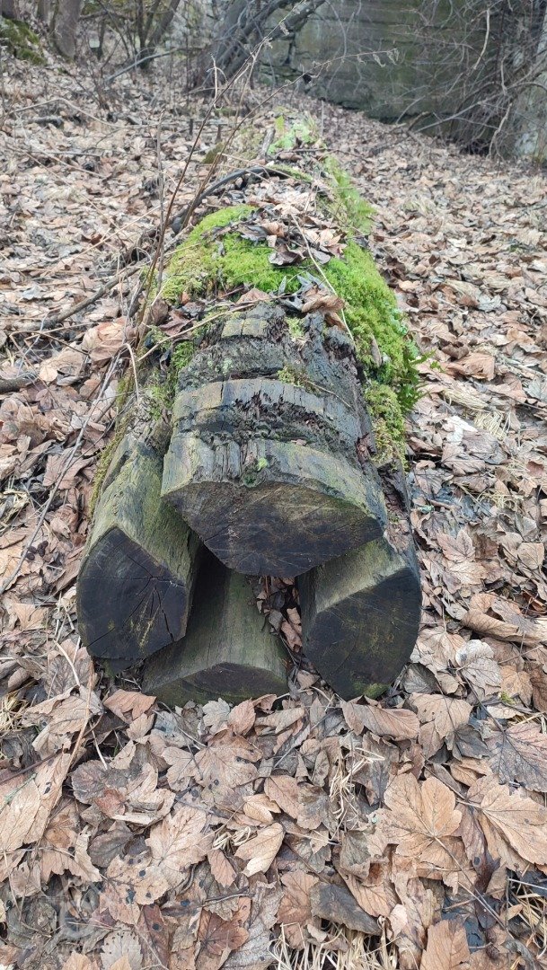 Pozůstatek dřevěného ložiska vodního kola, 7.2.2016, © Racocha, (Prvky na obrázku: Vodní kolo)