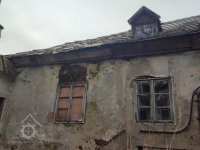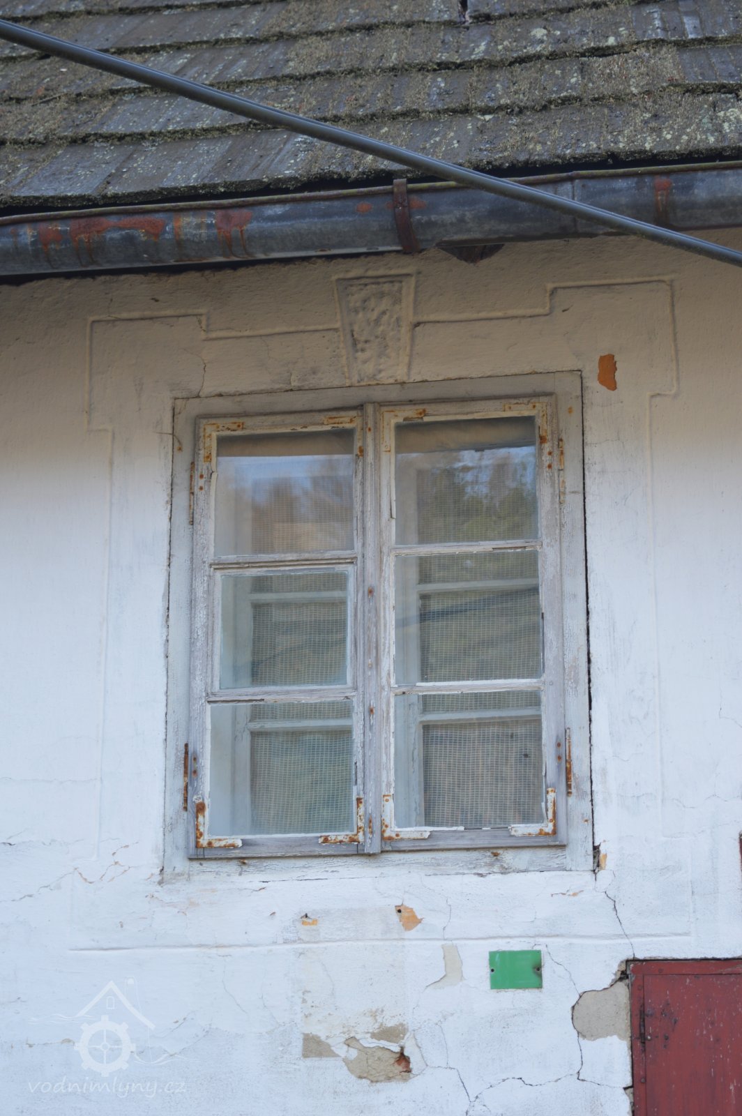 Okno obytné budovy, 7.2.2015, © Racocha, (Prvky na obrázku: okno, plastická omítková výzdoba fasád a štítů)