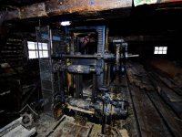Transmise, 11 2023, © Opuštěný svět, (Prvky na obrázku: transmise, řemenice, převody - transmisní hřídele s řemenicemi (výrobek průmyslový i řemeslný))