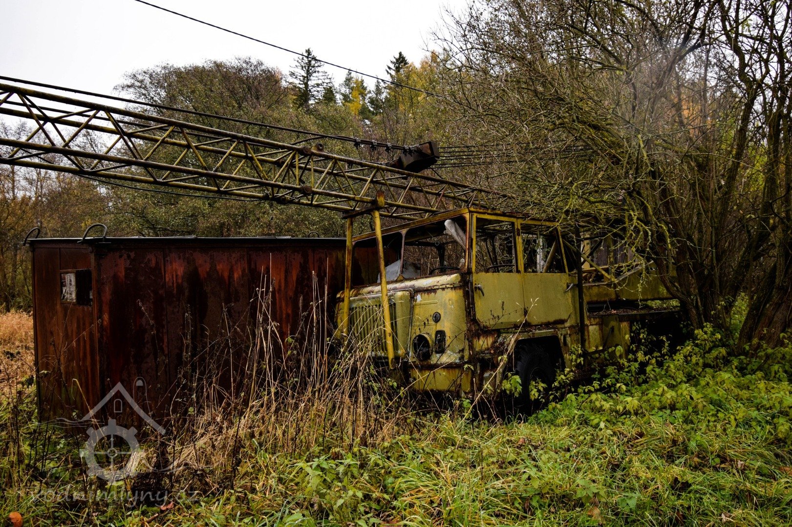 Pozůstatky vysuté kolejnicové dráhy k pile, 7.2.2016, © Racocha, (Prvky na obrázku: pila)