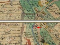 Před vchodovými dveřmi dochován kamenný štok - spíš z ruční než z kladivové stoupy (RŠ)