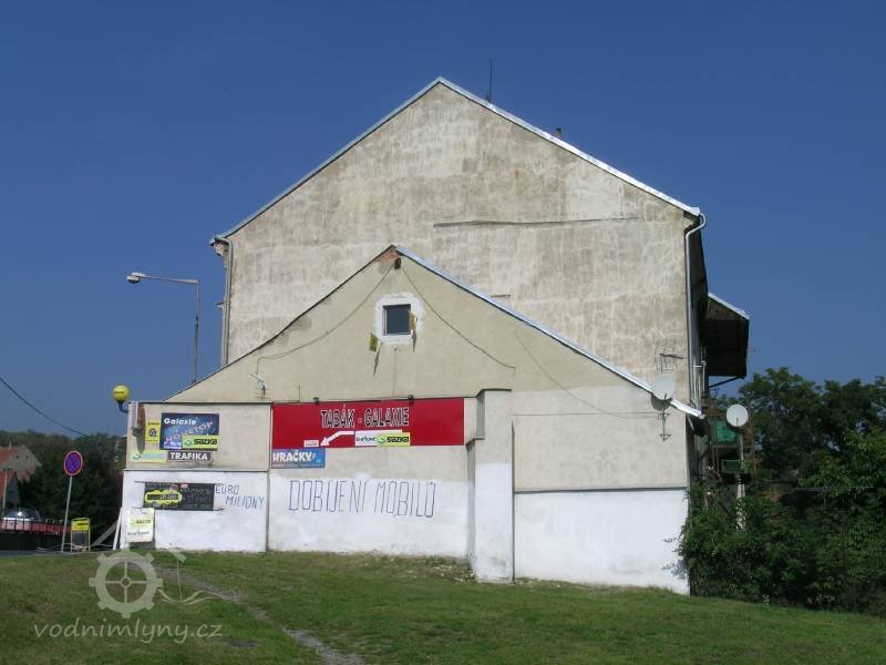 Do půdy jde 18 sdružených oken. Mezi okny jsou střídavě užší a širší lizény spojující kordonovou římsu nad patrem a hlavní římsu. Okna jsou jednokřídlá z dřevěných žaluzií. Sdružují se vždy po dvou s úzkým sloupkem uprostřed. Na pravé straně průčelí pokračuje přístavkem mlýnské budovy krytým valbovou střechou. Z jihu jsou zdi přístavku ubourané. Na jeho fasádě jsou pouze plechové jednokřídlé dveře s prahem asi 50 cm nad chodníkem. Jižní štít je holý, pouze omítaný, severní je rozčleněn dvěma trojicemi oken stejných jako na západním průčelí, mezi kterými jde kordonová římsa. Krajní okno do přízemí a pravé okno do patra jsou zevnitř zazděno. Omítka této fasády je téměř celá opadaná.
