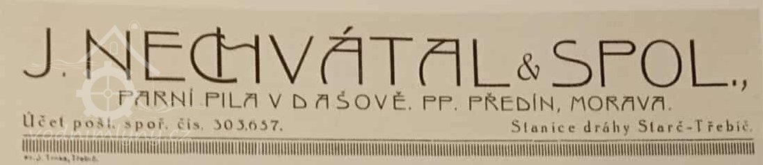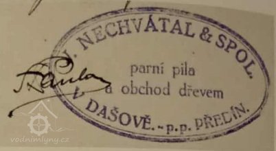 Sčítání lidu 15. února 1921: Josef Nechvátal je titulovaný mlynář a pilař, závod vlastní, žena Emma, děti: Anna, Božena,