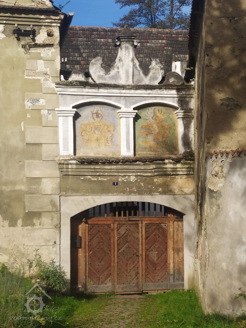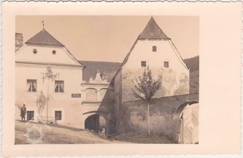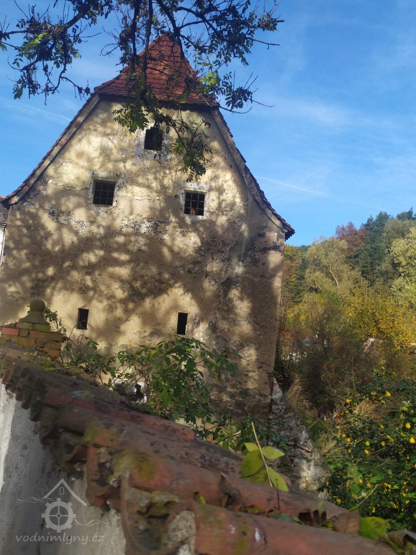 Mlýn postaven r. 1617 krumlovským primátorem Matyášem Hölderem, špýchar starší (pozdně gotický portál) 16. stol.