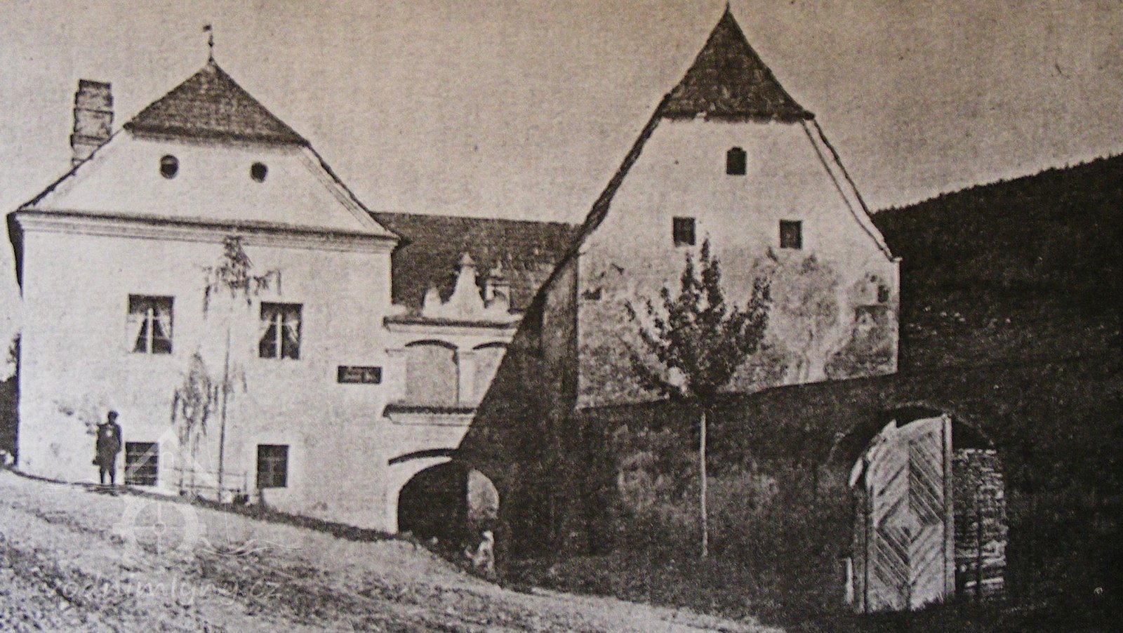 Zděná omítaná usedlost uzavřeného typu, obytný dům jednopatrový, dvouosý s polovalbou, ve štítu 2 kruhové větrací otvory a nové datování 1614. 0bytná budova spojena s bývalým špýcharem zdí a širokým pravoúhlým vjezdem a attikovým štítem členěným dvěma segmentovými nikami se třemi polopilířky. /V nikách zbytky figurálních maleb/. Špýchar s vysokou střechou a polovalbovým štítem je nečleněný, prostý. Sedlové střechy kryté cementkami.