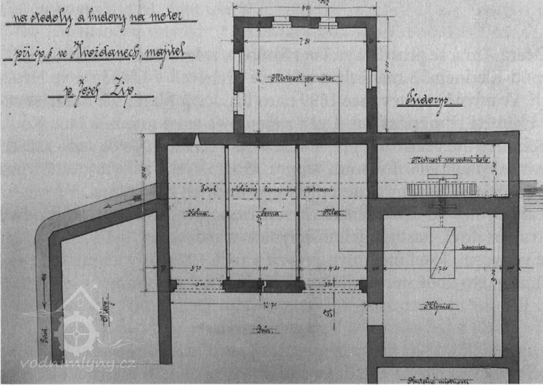 1927 náhon dlouhý 225 m, stržený jez i nádržka. Odtok veden pod stodolou, přikrytý kamennými plotnami.