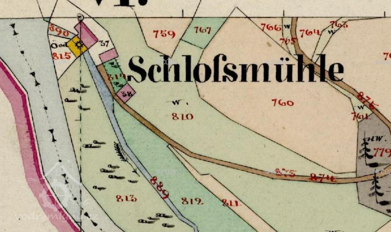 PopisV roce 1930 měl mlýn 1 kolo na spodní vodu, spád 1,5 m, výkon 7 HP.