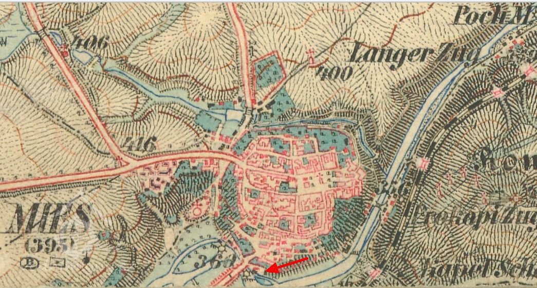 Der Standort der Mühle wird mit Mies Vorstadt 50, Mies 296, später mit Mies 333 angegeben. Die Standesfälle sind In der