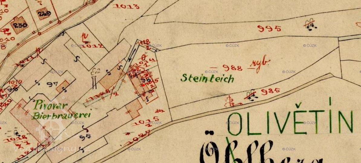 V místě, kde dnes stojí provozní budova pivovaru st.p. 98 Broumov-Olivětín, stával pod Pivovarským rybníkem na Svinském potoce pivovarský mlýn, postavený současně s klášterním benediktinským pivovarem v r. 1714. Je zobrazen na 1. vojenském mapování, indikační skice a císařském otisku. Mlýn již neexistuje.