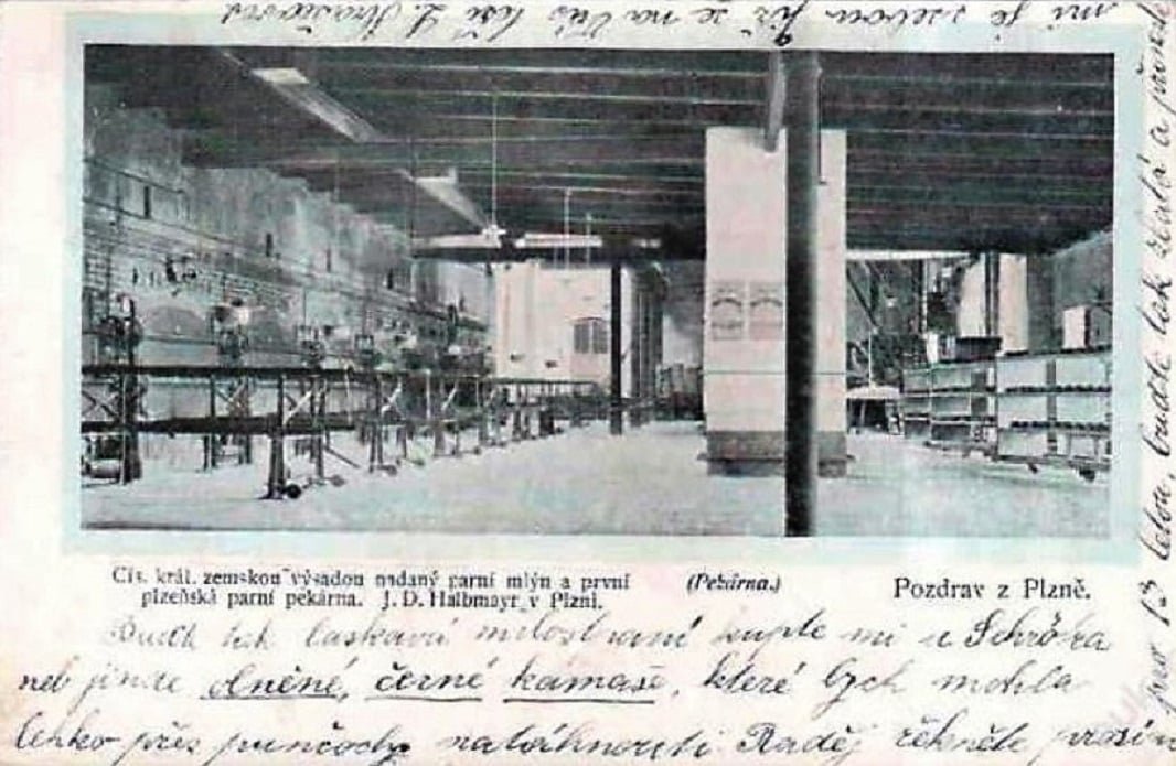 1877 - mlýn i jeho parní pekárnu kupuje Josef Dionys Halbmayer z Mariánských Lázní a rozšiřuje ho v moderní závod.