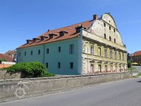 Pohled na zdobenou fasádu mlýna, 2006, © Šimek, (Prvky na obrázku: plastická omítková výzdoba fasád a štítů)